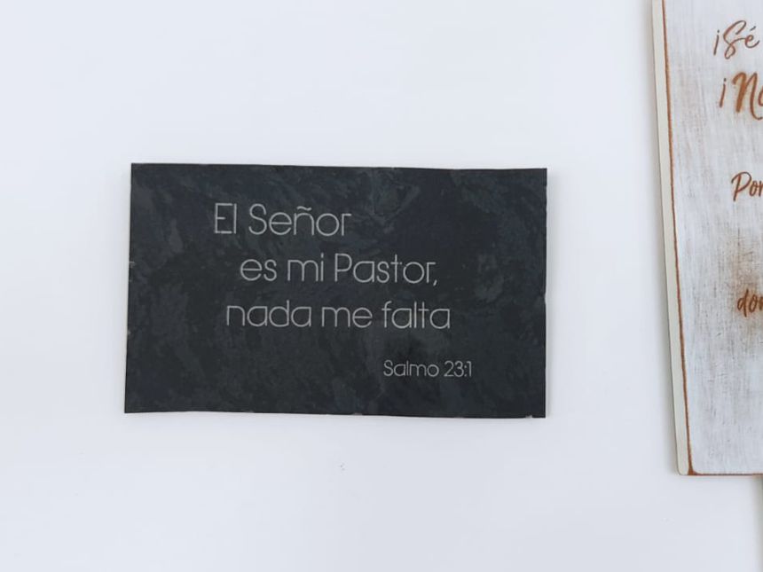 Retablo en piedra grabada para poner sobre la mesa o colgar en la pared con buena palabra de vida: El Senhor es mi Pastor, nada me falta. Salmos 23:1